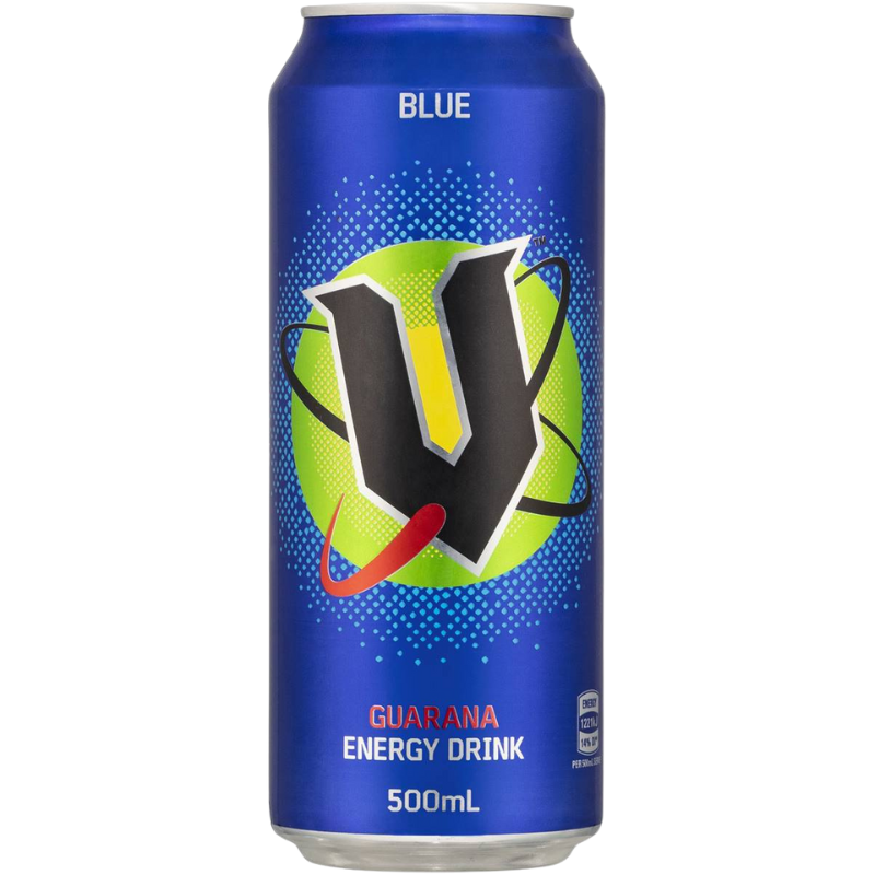 Blue can be a type of berry, a bird, a movie, or a state of mind. In this case it’s the colour of these V cans… and a mysterious flavour.